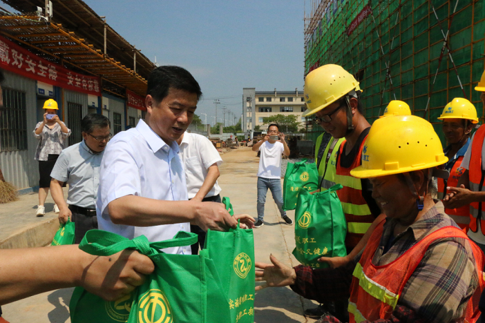 在項(xiàng)目施工現(xiàn)場(chǎng),區(qū)委書(shū)記吳旭光代表區(qū)委區(qū)政府向在高溫下作出辛勤工作的工人們表示深深的敬意,將防暑降溫物品送到他們手中,并叮囑他們要?jiǎng)谝萁Y(jié)合,注意身體健康。并要求項(xiàng)目部要科學(xué)安排作息時(shí)間,制定高溫應(yīng)急預(yù)案,加強(qiáng)施工現(xiàn)場(chǎng)安全管理,確保高溫時(shí)期工地安全生產(chǎn)形勢(shì)穩(wěn)定。